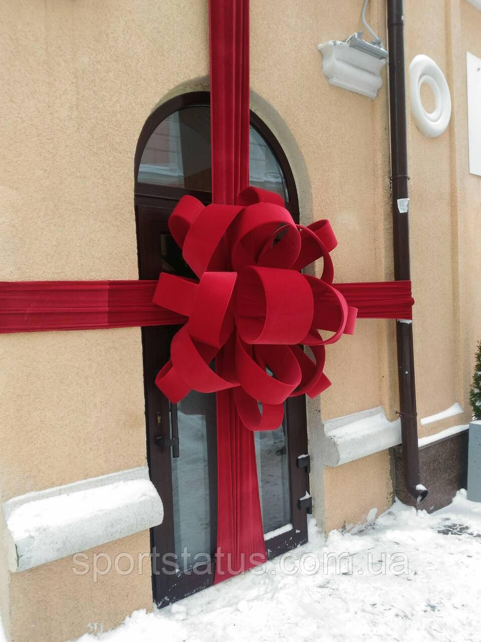 Великий м'який красивий бант в діаметрі 1.5 м. обшитий дорогий оксамитовою тканиною. Може бути виконаний в будь-якому кольорі,у вартість входить стрічка. Може бути виконаний по індивідуальному замовленню будь-якого розміру.